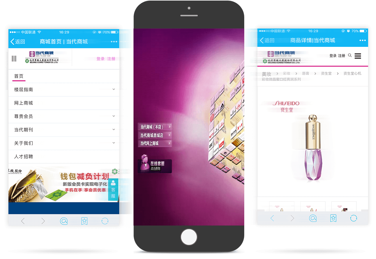网站主视觉采用交互技术,有效传达当代商城整体品牌形象。