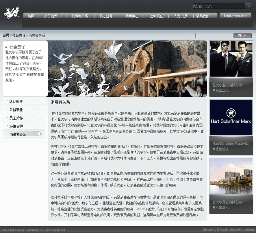 乐鱼平台_乐鱼(中国)一站式服务平台结合雅戈尔集团的整体视觉规范,为雅戈尔建设了集团官网及系列旗下品牌网站。不仅在设计上体现雅戈尔品牌
