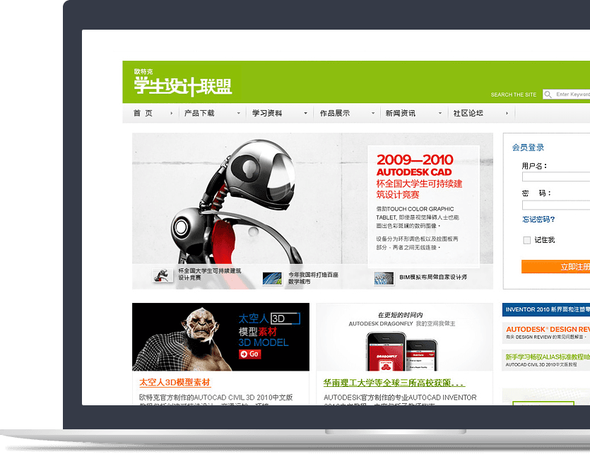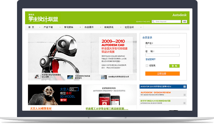 欧特克学生设计联盟网站以平台运营思 路为核心,设置多个主题活动、营销互动功能模 块为后续平台发展奠定基础。同时,乐鱼平台_乐鱼(中国)一站式服务平台长期为其提 供运维服务支持,保障社区平台稳定运营。