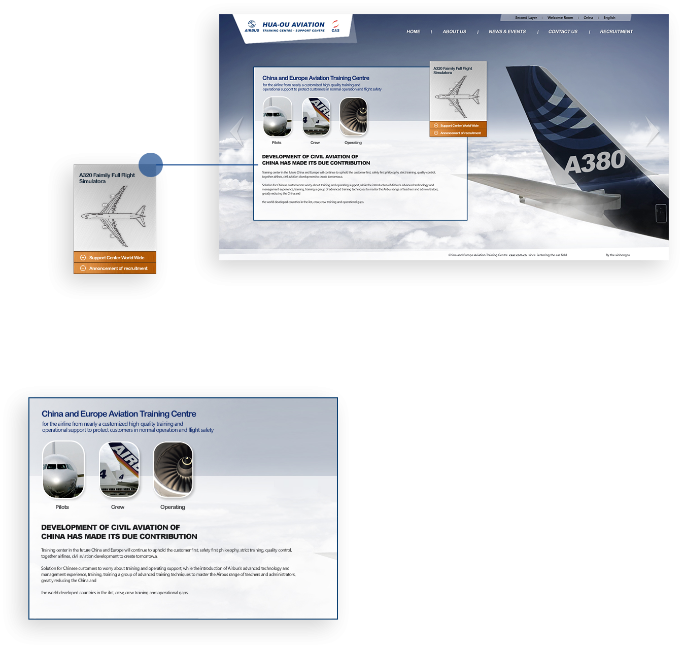 平台以A380代表性图片作为主视觉焦点,有效传达自身产品特征。并根据机长交流学习需求,定制开发平台功能。