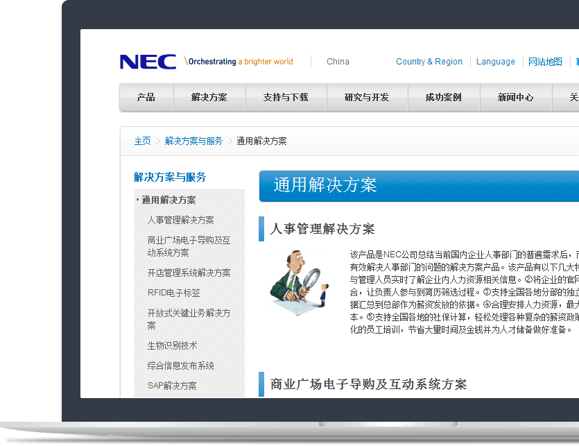 乐鱼平台_乐鱼(中国)一站式服务平台为NEC及旗下子乐鱼平台_乐鱼(中国)一站式服务平台建立中文网站群,实现后台统一管理,同时规范网站群WEB视觉识别体 系,打造NEC电子、NEC通讯、NEC移动的网络视觉识别系统。