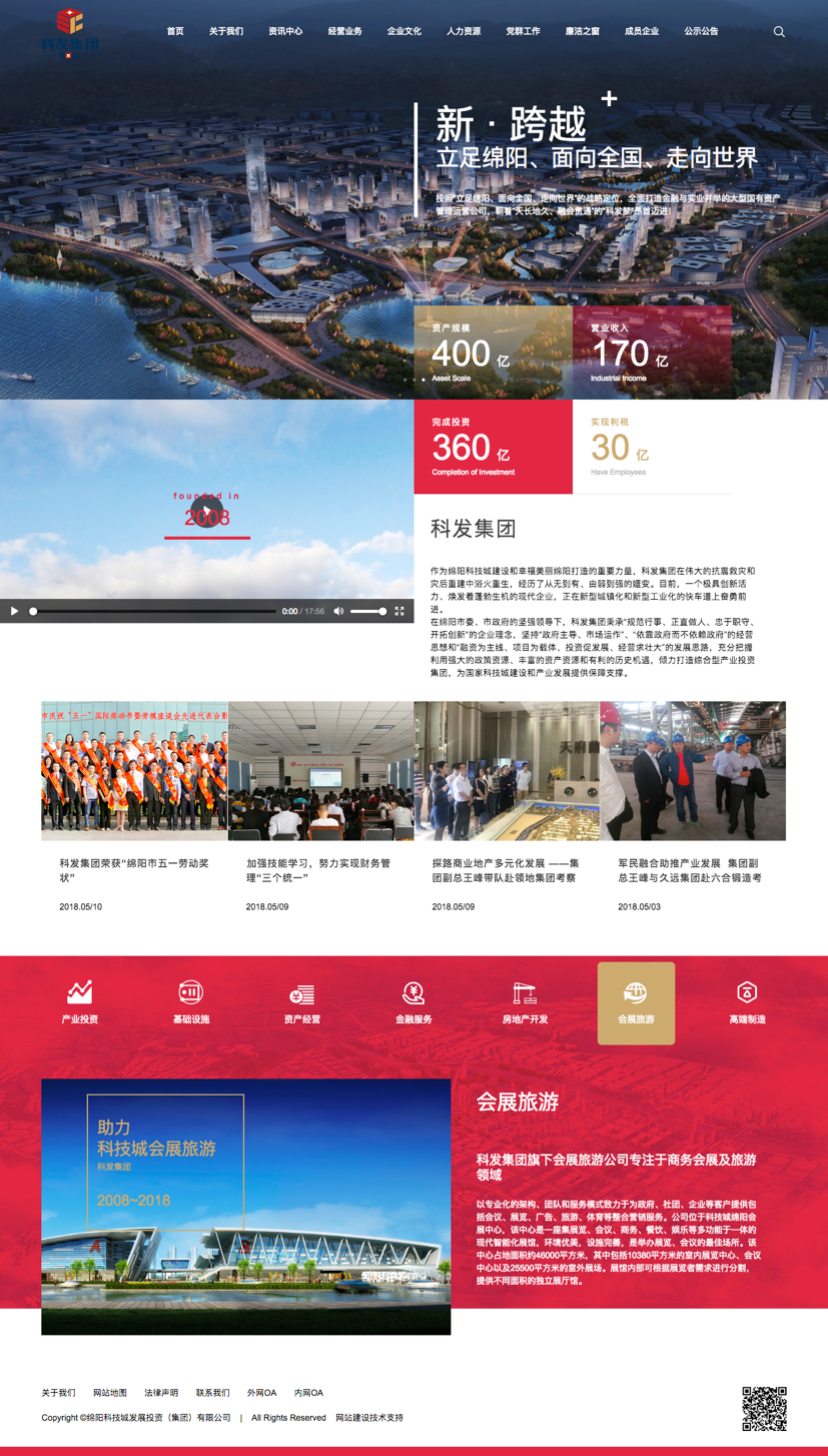 设计风格以现代化、简约化、国际化为主,红色作为主色,黄色作为配色,整体视觉效果与科发集团VI系统保持一致,构成统一的品牌视觉识别系统。同时,页面通过色块方格、扁平化图标、视频应用等创新设计元素提升视觉表现力,通过HTML5/JS/CSS3等技术实现良好的交互效果,每一步操作,都能为用户带来良好的用户体验。