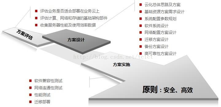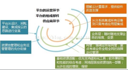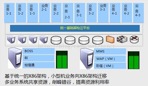 打破原有模式(每个平台厂家提供软、硬件),统一构筑硬件平台,只向业务厂家采购软件多业务系统共享资源,减少服务器数量,同时通过规划,实现多平台系统搭配后的错峰填谷通过平台层面的可靠性保证,降低对业务可靠性依赖,提高维护效率。 前期评估:收集业务现状,包括计算资源、存储资源、网络资源、负载均衡资源、防火墙资源,操作系统、数据库、中间件、及相关业务特点等信息,然后根据以上全部信息进行业务云化的可行性评估。